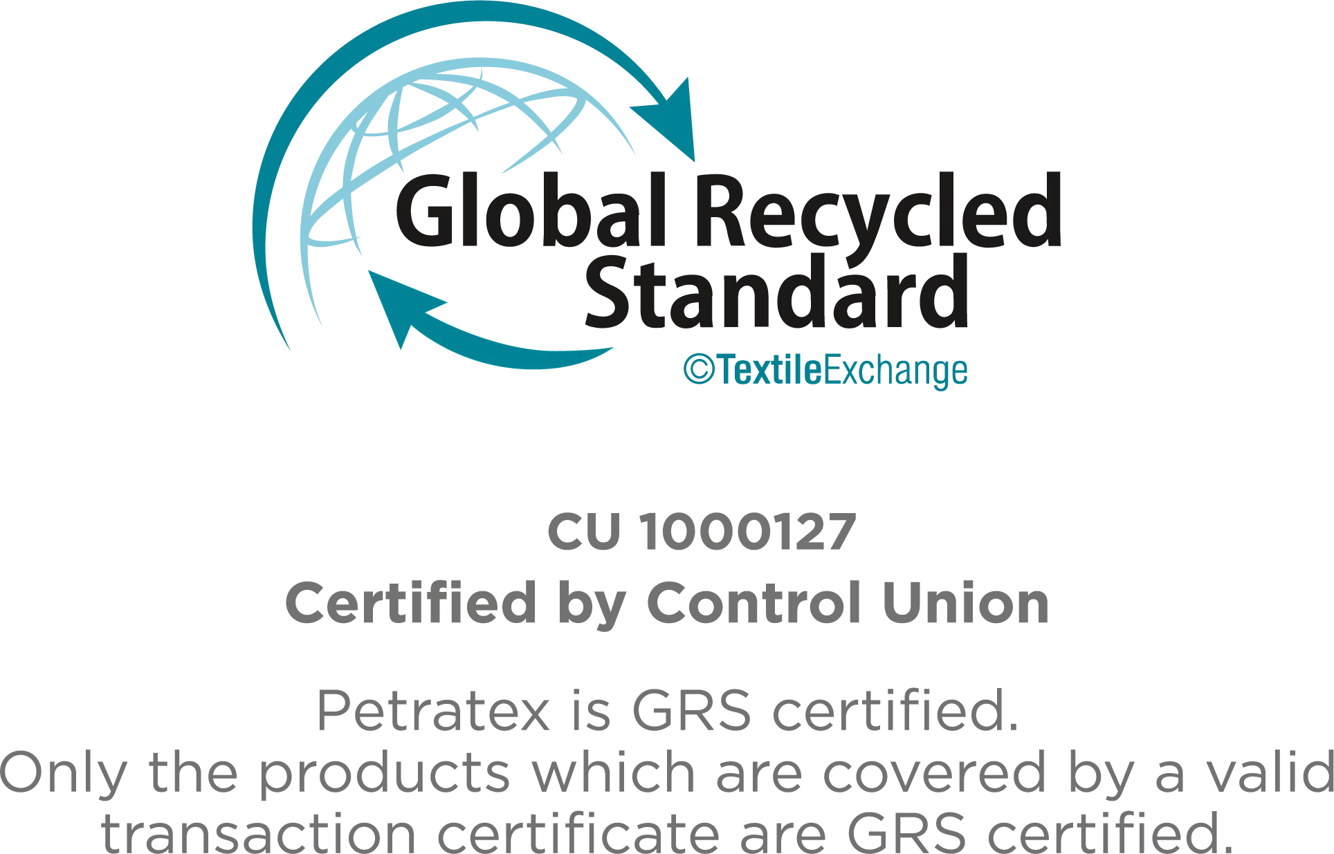 A Petratex, também é, certificada GRS (Global Recycle Standard), o que significa que podemos certificar produtos que usem fibras recicladas, com percentagem acima dos 20%. Esta certificação além do acompanhamento dos materiais reciclados, verifica os produtos químicos usados, e analisa as práticas socias e ambientais responsáveis na nossa produção.