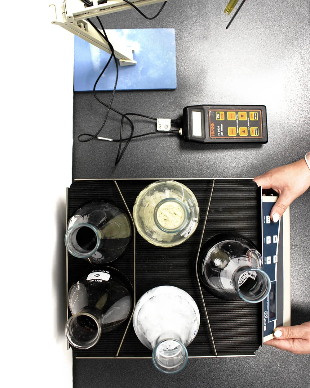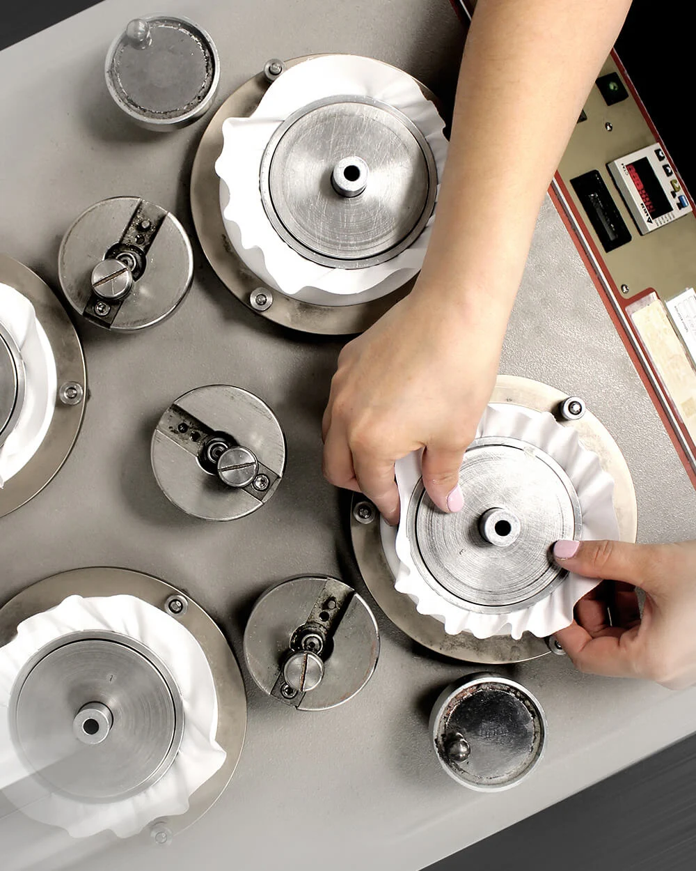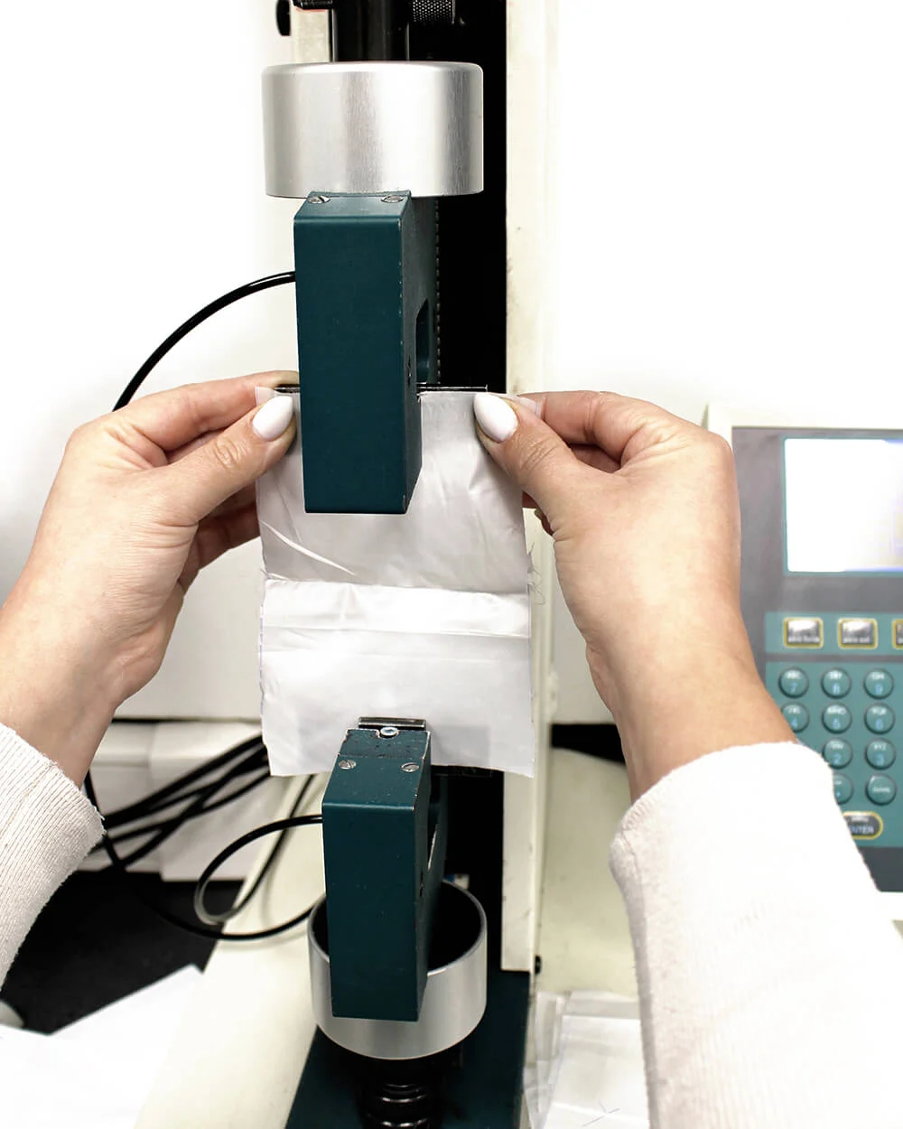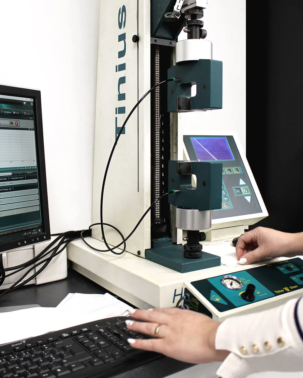 Diariamente realizamos cerca de 100 testes que verificam a conformidade com os requisitos do cliente ou normas de certificação de forma a garantir a qualidade do produto final. Entre esses testes, podemos medir a largura, peso, borboto, resistência dos materiais, medição de pH, resistência da costura, solidez da cor, encolhimento e comportamento das peças em uso.