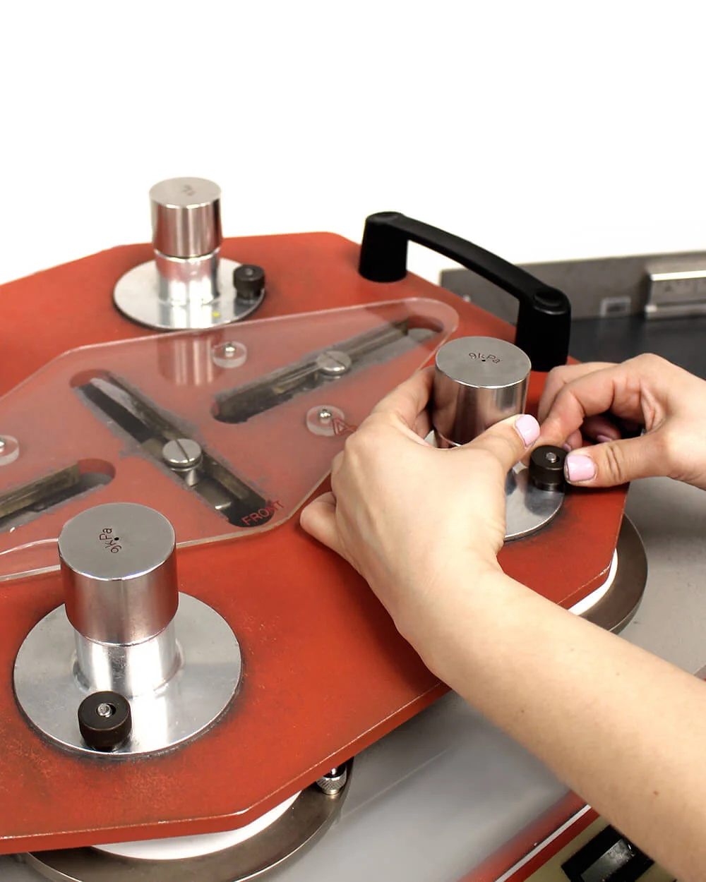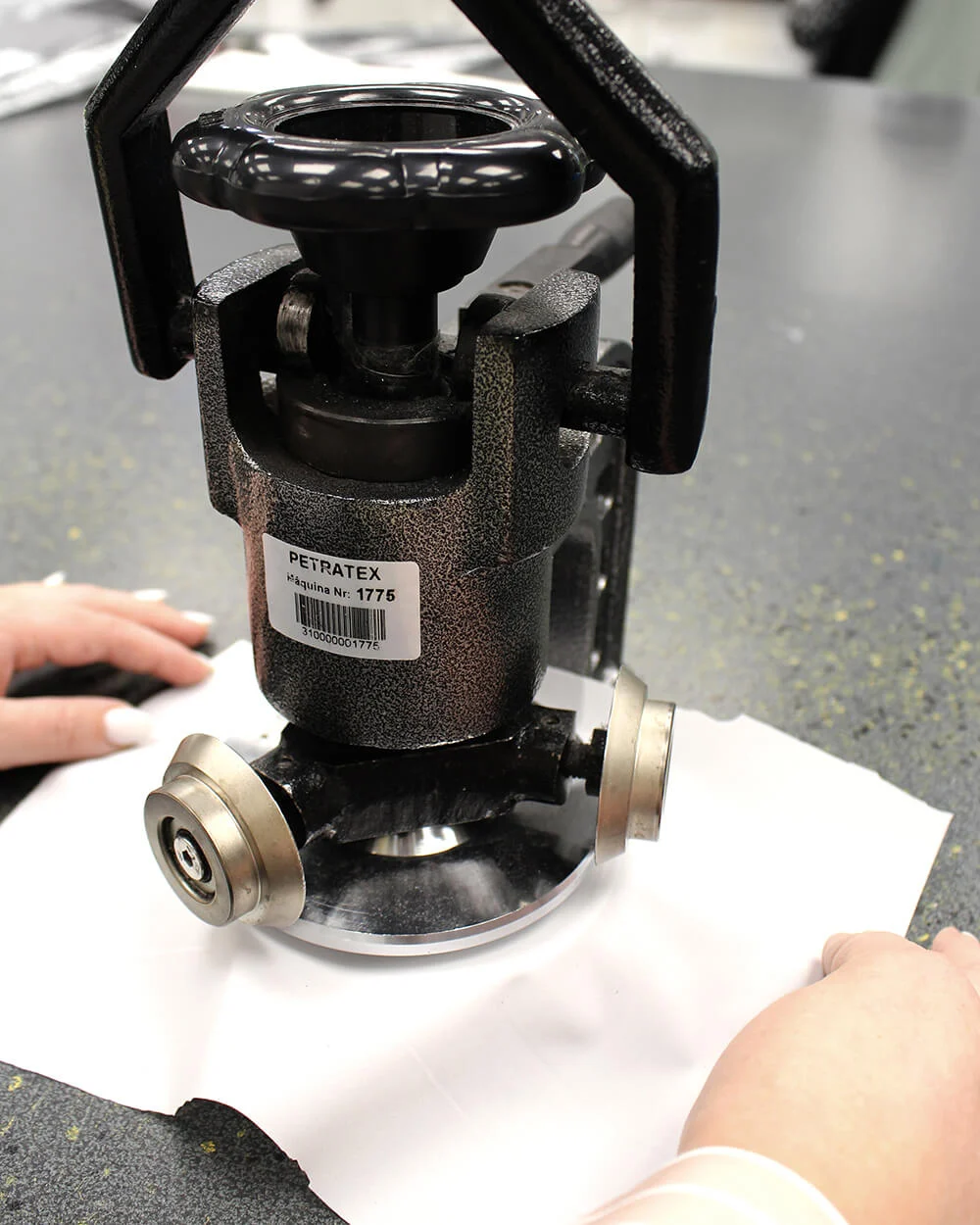 - Máquinas de teste de vestibilidade e resistência: à formação de borboto, à abrasão, à tração, assim como à resistência das costuras.