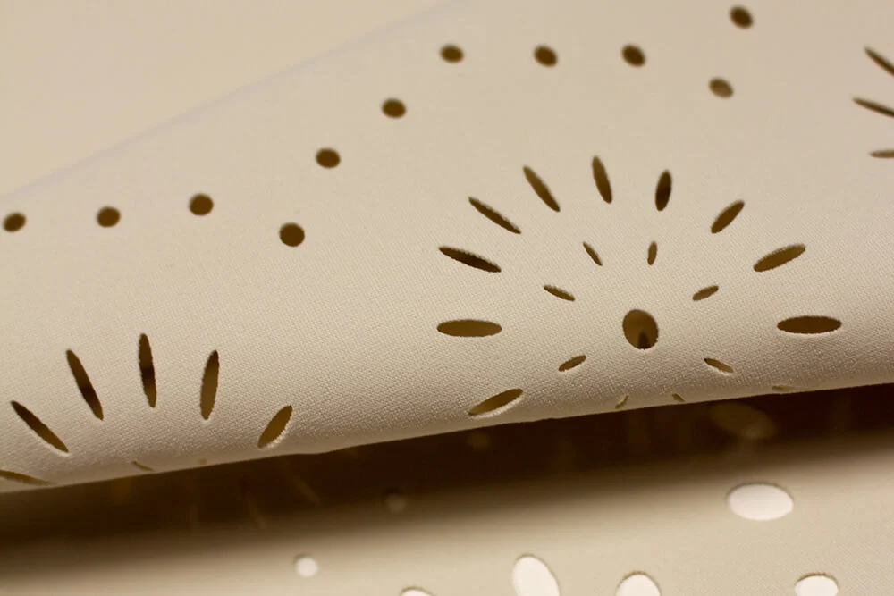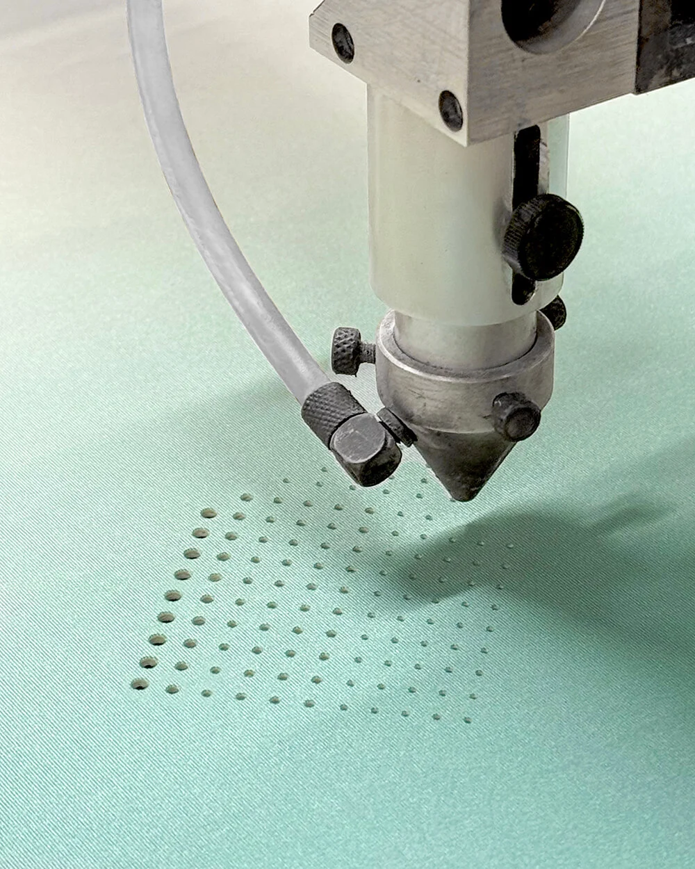 As máquinas de corte a laser têm a capacidade de cortar o tecido sem pressão, garantindo assim que não haja desgaste durante o processo.